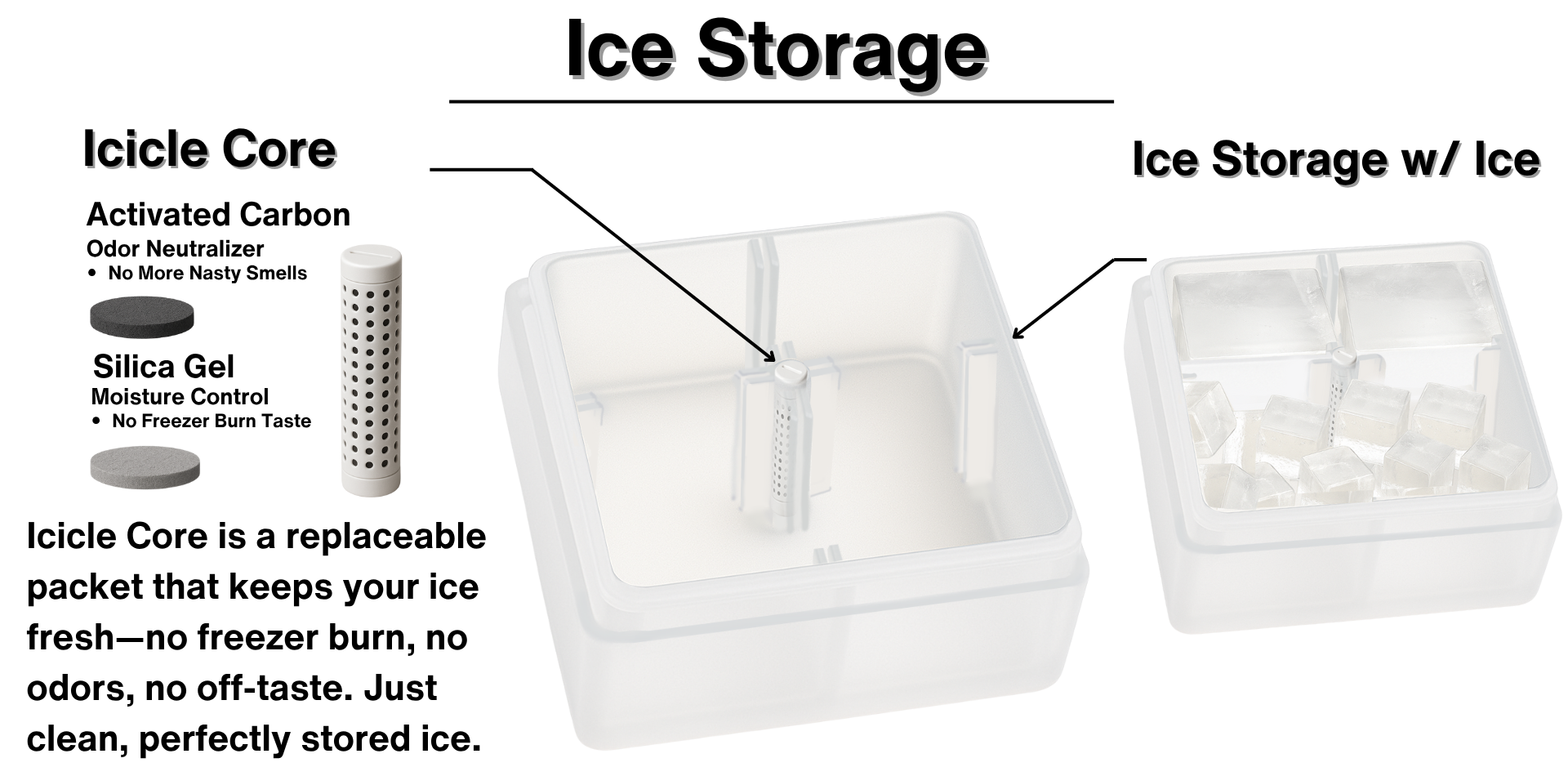 Includes a 2-month supply of our Icicle Core to keep your ice fresh—no smells, no freezer tastes.